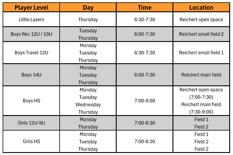 2026 Practice Schedules